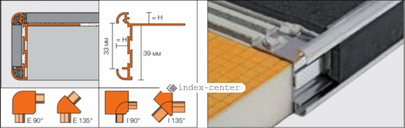 Профиль Schluter-Rondec-step-ctслужит для окантовки столешниц кухонь или полок, имеющих керамическое покрытие. В паз фронтальной части профиля может вставляться материал, использованный для облицовки столешницы верхней стороны, а также могут размещаться другие декоративные элементы.